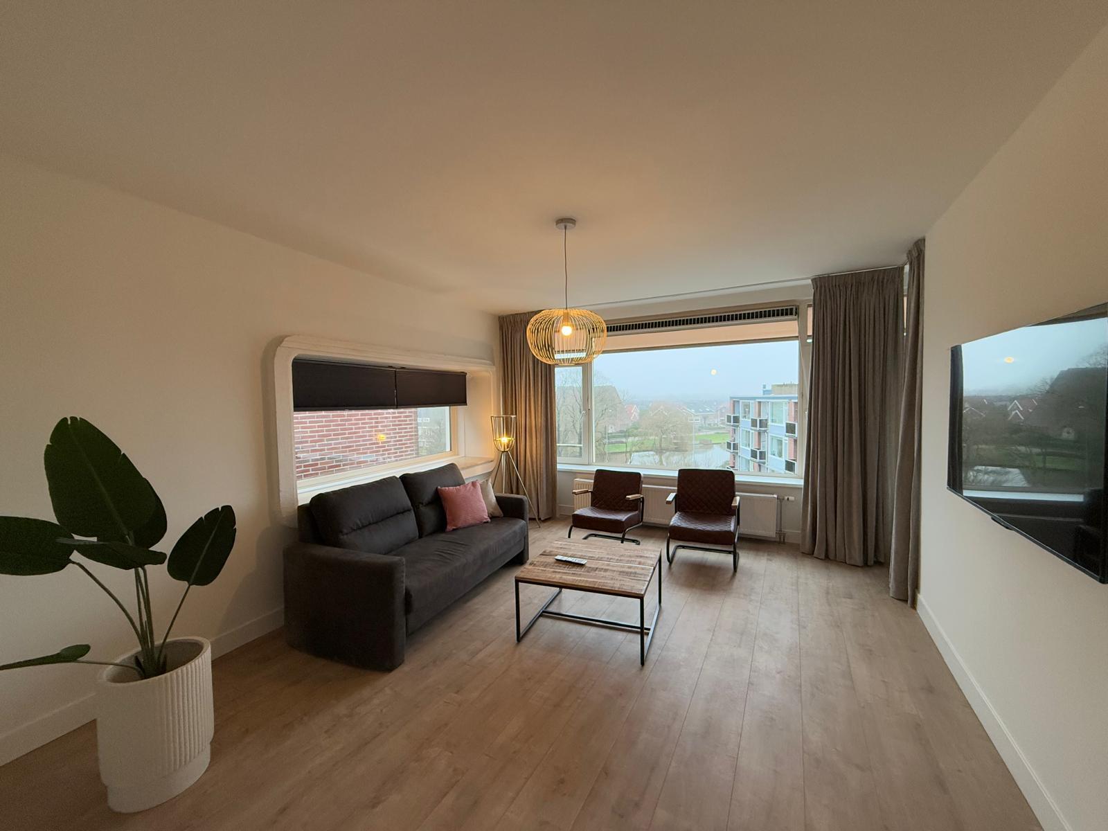 In the area of Eemshaven, Delfzijl, Farmsum and Appingedam we offer a fully furnished 3-room apartment. The bedrooms are equipped with comfortable boxspring beds, double beds and wardrobes.